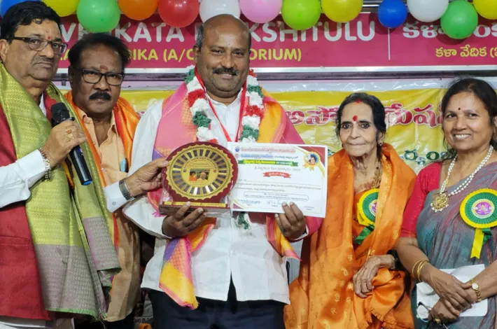 ఎల్బీనగర్: ఎల్బీనగర్ లోని అనాథ విద్యార్థి గృహ అధ్యక్షుడు మార్గం రాజేశ్ "శ్రీ సత్యసాయి సేవా పురస్కారం - 2025" అందుకున్నారు. పినాకిని యూత్ వెల్ఫేర్ అసోసియేషన్, కుసుమ ధర్మన్న కళాపీఠం అధ్వర్యంలో శనివారం ఉదయం చిక్కడపల్లిలోని త్యాగరాజ గానసభలో భగవాన్ సత్యసాయిబాబా 100వ జయంతి వేడుకలు జరిగాయి. ఈ వేడుకల్లో సాహితీ, కళా, సేవా రంగాల్లో సేవలు అందించిన ప్రముఖులను సన్మానించారు.