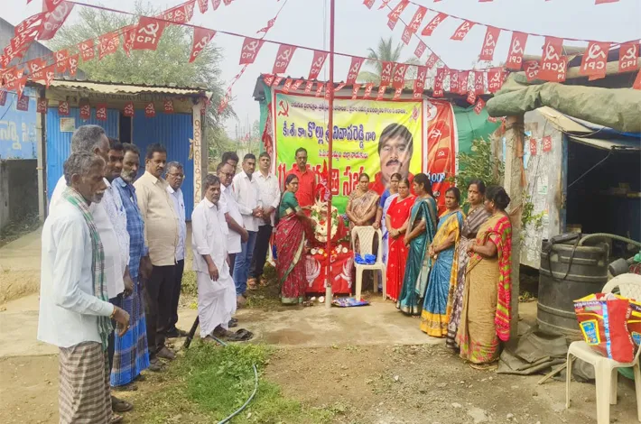 అశ్వాపురం,(విజయక్రాంతి): దోపిడీ రహిత సమాజ నిర్మాణమే అమరజీవి కామ్రేడ్ కొల్లు శ్రీనివాస్ రెడ్డి గారి ప్రధాన లక్ష్యమని సిపిఐ రాష్ట్ర సమితి సభ్యురాలు మున్నా లక్ష్మి కుమారి అన్నారు. మొండికుంట గ్రామంలో కొల్లు శ్రీనివాస్ రెడ్డి 11వ వర్ధంతిని పురస్కరించుకుని సిపిఐ కార్యాలయం వద్ద ఆయన విగ్రహానికి పూలమాలలు వేసి ఘనంగా నివాళులు అర్పించారు.
