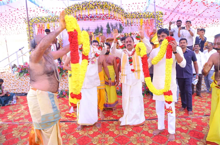 ఈ సందర్భంగా ఆలయానికి విచ్చేసిన మంత్రివర్యులకు ఆలయ నిర్వాహకులు, అర్చకులు సంప్రదాయబద్ధంగా పూర్ణకుంభంతో స్వాగతం పలికారు. అనంతరం మంత్రులు ఇద్దరూ శ్రీ వెంకటేశ్వర స్వామి వారిని దర్శించుకుని ప్రత్యేక పూజలు నిర్వహించి స్వామి వారి ఆశీస్సులు పొందారు. ఈ కార్యక్రమం భక్తి వాతావరణంలో వైభవంగా నిర్వహించబడింది. తదనంతరం నిర్వహించిన శ్రీనివాస కళ్యాణ మహోత్సవంలో మంత్రులు ఇద్దరూ భక్తులతో కలిసి కార్యక్రమాన్ని భక్తి పరవశంతో వీక్షించారు.