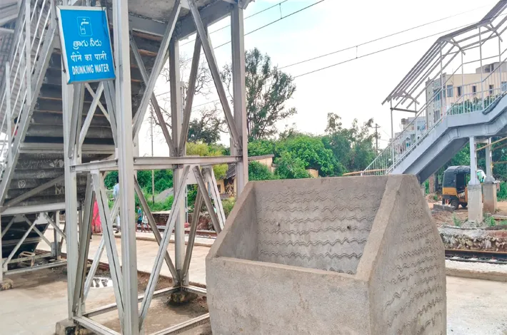 అలాగే తాగునీటి వసతి పునరుద్ధరించలేదు. కొత్తగా ప్లాట్ఫారం నిర్మాణం కోసం గతంలో ఉన్న తాగునీటి నల్లాలను తొలగించి కొత్తగా నిర్మాణం చేపట్టినప్పటికీ పైప్ లైన్ కనెక్షన్ ఇవ్వకుండా వదిలేయడంతో తాగునీరు కోసం ఒకటో నెంబర్ ప్లాట్ ఫామ్ కు వెళ్లి తెచ్చుకోవాల్సి వస్తుందని చెబుతున్నారు. అలాగే స్టేషన్లో కూర్చోవడానికి ప్రయాణికులకు సరిపడా కుర్చీలు లేవని, దీనితో రైలు వచ్చేంతవరకు నిలబడాల్సిన పరిస్థితి ఏర్పడిందని చెబుతున్నారు. రైల్వే స్టేషన్లో కోచ్ డిస్ప్లే బోర్డులు ఏర్పాటు చేయకపోవడంతో రైలు వచ్చేంతవరకు రిజర్వేషన్, జనరల్ కోచ్ కోసం వెతుక్కోవలసిన పరిస్థితి ఏర్పడిందని చెబుతున్నారు.