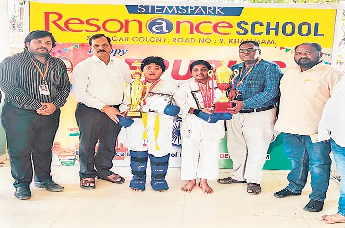 ఖమ్మం, ఫిబ్రవరి 11 (విజయక్రాంతి): ఖమ్మం శ్రీనగర్ కాలనీలో గల స్టెమ్స్పార్క్ రెజొనెన్స్ స్కూల్ విద్యార్థులు ఆసియా ఇం టర్నేషనల్ డబ్ల్యూఫ్ఎస్కేఓ ఓపెన్ కరాటే చాంపియన్ షిప్-2026 పోటీలలో అండర్-14 కుమిటే బాలుర విభాగంలో ఎస్కె అద్నాన్ బంగారు పతకం, కటా విభాగంలో సిల్వర్ పతకాలు సాధించారు. అండర్-12 కుమిటే బాలికల విభాగంలో రెడ్డిబోయిన సోనాక్షి సిల్వర్ పతాకాన్ని, కటా విభాగంలో బాంజ్ పతకం సాధించారు.