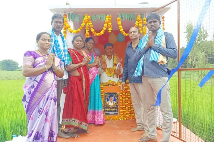 మహబూబాబాద్,(విజయక్రాంతి): కని పెంచి పెద్ద చేసి, ప్రయోజకులుగా తీర్చిదిద్దిన తండ్రి అకాల మృత్యువాత పడగా కొడుకులు, కూతురు కలిసి నిత్యం గుర్తుండే విధంగా తండ్రికి గుడి కట్టి అందులో ఆయన శిలా విగ్రహం ఏర్పాటు చేసి చేసిన ఘటన మహబూబాబాద్ జిల్లా కేసముద్రం పట్టణ పరిధిలో జరిగింది. కేసముద్రం పట్టణానికి చెందిన నర్సింగం రాజలింగం గత ఏడాది చనిపోయారు. శనివారం ప్రధమ వర్ధంతి సందర్భంగా ఆయన కుమారులు మల్లేష్, వెంకటేష్, కూతురు అల్లుడు హైమ రమేష్, భార్య ఐలమ్మ ఆధ్వర్యంలో తమ వ్యవసాయ క్షేత్రం వద్ద గుడి కట్టి అందులో విగ్రహం ఏర్పాటు చేసి కుటుంబ సభ్యులతో కలిసి ఘనంగా నివాళులు అర్పించారు.