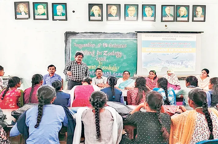 నల్లగొండ టౌన్, ఫిబ్రవరి 26: విద్యార్థులు పీ జీ ఎంట్రన్స్ లో ఉత్తమ ఫలితాలు సాధించాలని స్థానిక మహిళ కళాశాల ప్రిన్సిపాల్ శ్రీనివాసరాజు అన్నారు గురువారం స్థానిక మహిళా డిగ్రీ కళాశాలలోజువాలజీ విభాగం ఆధ్వర్యంలో పోస్ట్ గ్రాడ్యుయేషన్ ఎంట్రెన్స్2026 జువాలజీ ఉచిత కోచింగ్ను ప్రారంభించారు ప్రిన్సిపాల్ మాట్లాడుతూ, ఈ ఉచిత కోచింగ్ను విద్యార్థినులు సద్వినియోగం చేసుకుని ఉన్నత విద్యలో మంచి ఫలితాలు సాధించాలని సూచించారు.