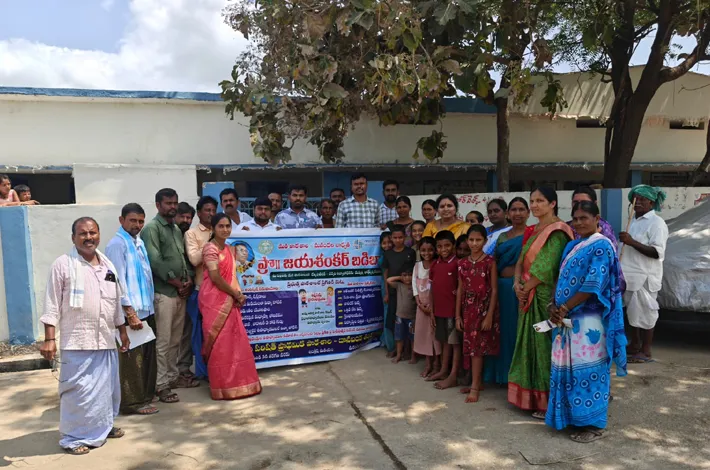 మఠంపల్లి,(విజయక్రాంతి): రాష్ట్ర ప్రభుత్వ ప్రవేశపెట్టిన ప్రజా పాలన ప్రగతి ప్రణాళిక 99 రోజుల కార్యక్రమంలో భాగంగా గురువారం మఠంపల్లి మండలంలోని కొత్త దొనబండ తండా గ్రామంలో ప్రభుత్వ పాఠశాల ఉపాధ్యాయుల ఆధ్వర్యంలో బడిబాట కార్యక్రమాన్ని నిర్వహించారు.ఈ కార్యక్రమానికి ముఖ్య అతిథిగా సర్పంచ్ బానోతు అరుణా దేశ్ పాండు నాయక్ హాజరై మాట్లాడుతూ ప్రతి ఒక్కరూ పిల్లలను ప్రభుత్వ పాఠశాలలో చేర్పించాలని,ఉన్నంత విద్య అభ్యసించిన ఉపాధ్యాయులు ప్రభుత్వ పాఠశాలలో పాఠాలు బోధిస్తారు కాబట్టి ప్రతి ఒక్కరూ ఈ అవకాశాన్ని సద్వినియోగం చేసుకోవాలని కోరారు.ఈ కార్యక్రమంలో ఉపాధ్యాయులు, కార్యదర్శి, వార్డు సభ్యులు, గ్రామ ప్రజలు, అంగన్వాడీ టీచర్లు తదితరులు పాల్గొన్నారు.