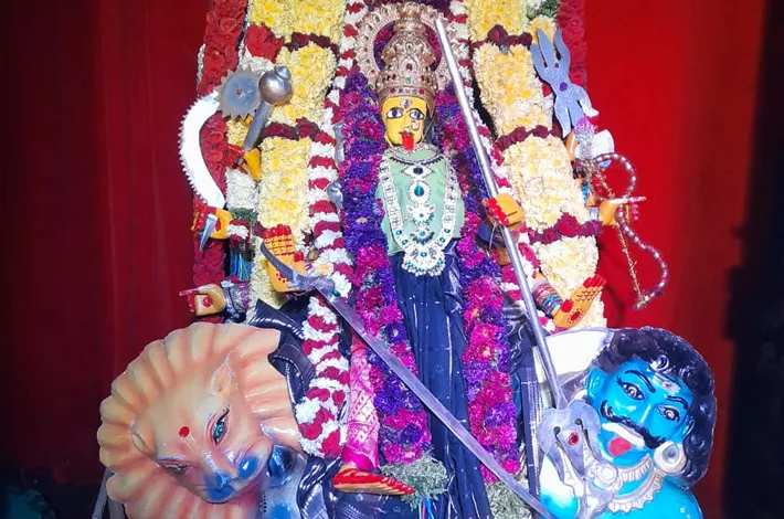మహదేవపూర్ (విజయక్రాంతి): జయశంకర్ భూపాలపల్లి జిల్లా మహదేవపూర్ మండలంలోని శ్రీ కాళేశ్వర ముక్తేశ్వర స్వామి క్షేత్రంలోని శుభానంద దేవి అమ్మవారు బుధవారం తొమ్మిదవ రోజున మహిషాసుర మర్దిని అలంకరణలో భక్తులకు దర్శనమిచ్చారు. శ్రీ కాలేశ్వరం ముక్తేశ్వర స్వామి అర్చకులు వేద పండితుల ఆధ్వర్యంలో హోమం నిర్వహించారు. అనంతరం పూర్ణాహుతి కార్యక్రమం నిర్వహించి అన్నదాన కార్యక్రమం నిర్వహించారు. ఈ కార్యక్రమంలో ఈవో మహేష్ అన్నదాత గందేసిరి మధుసూదన్, రమాదేవి, కాంగ్రెస్ సీనియర్ నాయకులు శ్రీనివాస్ రెడ్డి, భక్తులు, గ్రామస్తులు తదితరులు పాల్గొన్నారు.
