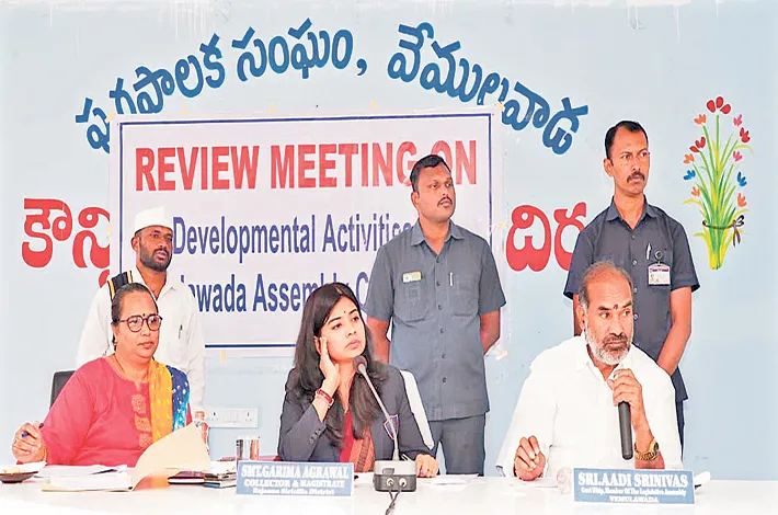 రాజన్న సిరిసిల్ల, నవంబర్ 20 (విజయ క్రాంతి): వేములవాడ నియోజకవర్గంలో చేపడుతున్న అభివృద్ధి పనుల పురోగతిపై రెవెన్యూ, నీటిపారుదల, విద్యుత్, రహదారు లు & భవనాలు, పంచాయితీ రాజ్, గృహనిర్మాణ, మిషన్ భగీరథ, తదితర శాఖల అధికారులతో వేములవాడ మున్సిపల్ కా ర్యాలయంలోని సమావేశ మందిరంలో రా ష్ట్ర ప్రభుత్వ విప్, ఆది శ్రీనివాస్ గురువారం సమీక్ష నిర్వహించారు.