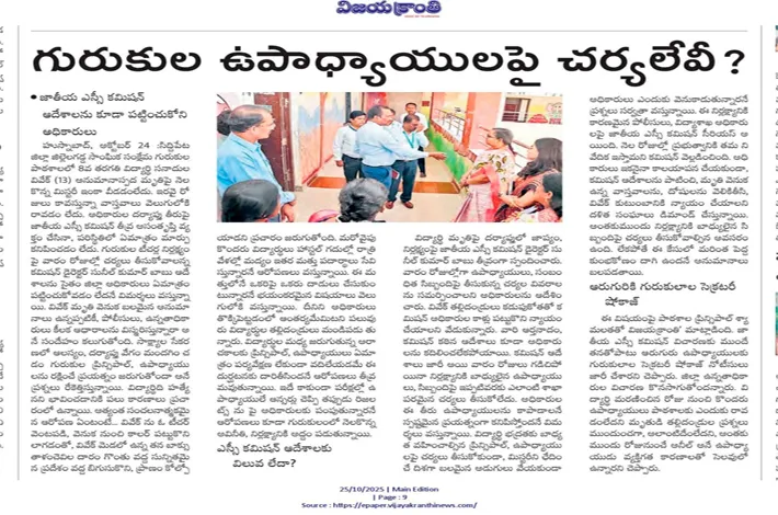- గురుకుల విద్యార్థి మృతికి కారకులని విధుల నుంచి తొలగింపు