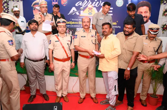బెల్లంపల్లి, ఏప్రిల్ 12 : అరైవ్ - అలైవ్ కార్యక్రమాన్ని ఒక ఉద్యమంగా సాగించాలని రాష్ట్ర డైరెక్టర్ జనరల్ ఆఫ్ పోలీస్ (డీజీపీ) బి శివధర్ రెడ్డి పేర్కొన్నారు. రోడ్డు భద్రతా వారోత్సవాల సందర్భంగా ఆదివారం బెల్లంపల్లి సబ్ డివిజన్ పోలీసుల ఆధ్వర్యంలో బెల్లంపల్లి పోలీస్ హెడ్క్వార్టర్స్లో నిర్వ హించిన అవగాహన కార్యక్రమానికి ముఖ్య అతిథిగా హాజరై మల్టీజోన్-I ఐజీ చంద్రశేఖర్ రెడ్డి, రామగుండం సీపీ అంబర్ కిశోర్ ఝా, మంచిర్యాల కలెక్టర్ కుమార్ దీపక్ లతో కలిసి మాట్లాడారు.