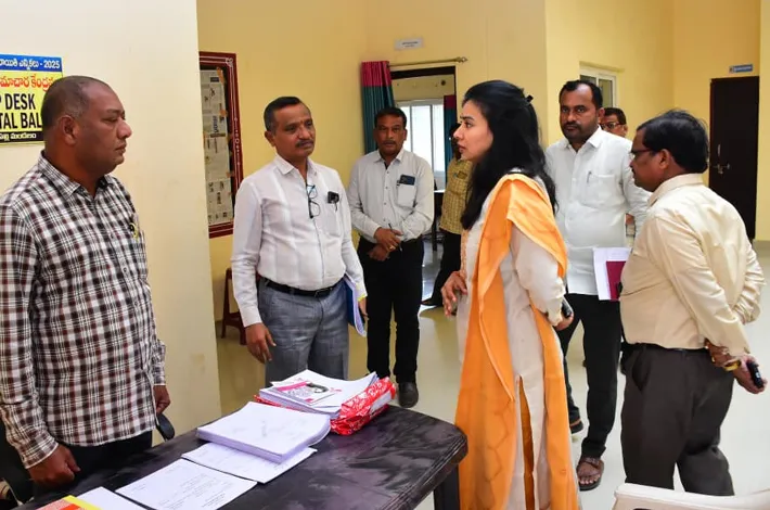 తంగళ్ళపల్లి (విజయక్రాంతి): గ్రామ పంచాయతీ రెండో విడత ఎన్నికల నామినేషన్ కేంద్రాలు, చెక్ పోస్ట్ ను ఇంచార్జి కలెక్టర్, జిల్లా ఎన్నికల అధికారి గరిమ అగ్రవాల్ ఆదివారం పరిశీలించారు. తంగళ్ళపల్లి మండలం జిల్లెల ఎస్ఎస్ టీ చెక్ పోస్ట్ ను ఇంచార్జి కలెక్టర్, జిల్లా ఎన్నికల అధికారి తనిఖీ చేశారు. రిజిస్టర్లు పరిశీలించి, వాహనాల తనిఖీ వివరాలు అడిగి తెలుసుకున్నారు. అనంతరం జిల్లెల గ్రామ పంచాయతీ కార్యాలయంలో ఏర్పాటు చేసిన ఆర్ఓ కేంద్రం, తంగళ్ళపల్లి ఎంపీడీఓ కార్యాలయంలో ఏర్పాటు చేసిన పోస్టల్ బ్యాలెట్ హెల్ప్ డెస్క్, తంగళ్ళపల్లి గ్రామ పంచాయతీ కార్యాలయంలో ఏర్పాటు చేసిన ఆర్ఓ కేంద్రాన్ని పరిశీలించారు. ఆర్ఓ కేంద్రాల్లో అభ్యర్థుల కోసం కల్పించిన సహాయ కేంద్రం, వసతులు పరిశీలించి, అధికారులకు సూచనలు చేశారు. పరిశీలనలో ఆర్డీఓ వెంకటేశ్వర్లు, తహసీల్దార్ జయంత్, ఎంపీడీఓ లక్ష్మీనారాయణ తదితరులు పాల్గొన్నారు.