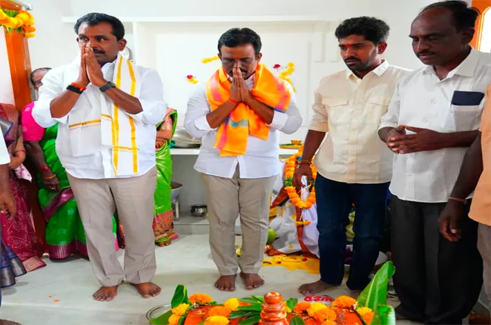 ఇందిరమ్మ ఇంటిని ప్రారంభించిన ఎమ్మెల్యేలు మధుసూదన్ రెడ్డి, మేఘా రెడ్డి