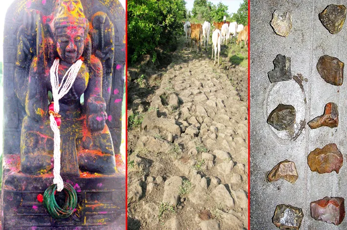 కనకాయ్ కోటకు వెళ్లే దారిలోనే కనిపించిన పురాతన మానవుల సమాధుల ప్రాంతం లో, కనకాయ్ గుడి నుంచి తిరిగివొచ్చే దారిలో కొన్ని రాతిపని ముట్లు దొరికాయి. వాటిలో దోకుడు (చాపర్) రాయి, స్క్రూడ్రైవర్ వంటి పరికరం, మైక్రోలిథ్స్ వున్నాయి. ఠాకూర్ రాజారాంసింగ్ ఈ ప్రాంతం లో పాతరాతియుగం నుంచి మధ్యరాతియుగం దాకా రాతిపనిముట్లు విరివిగా దొరికినట్లు తన నోట్స్ లో రాసుకున్నాడు. ఈ పనిముట్లు ఈ ప్రాంతమంతా ఒకప్పుడు పురాతన మానవుల ఆవాసాలుండేవని, వేలసంవత్సరాలుగా నివసించినట్లు వారి పనిముట్లు, ఇతర ఆధారాలతో చెప్పవచ్చు. చారిత్రక కాలానికి సంబంధించి ఈ కనకాయ్ గోండు రాజ్యంలోని ఒక కోట. అక్కడ లభించిన ఇటుకలు సాతవాహన కాలానికి చెందినవి. అందువల్ల ఇక్కడ సాతవాహనకాలం నుంచే రాజ్యమేదో ఉండేదని సందేహించ వలసి వస్తున్నది.