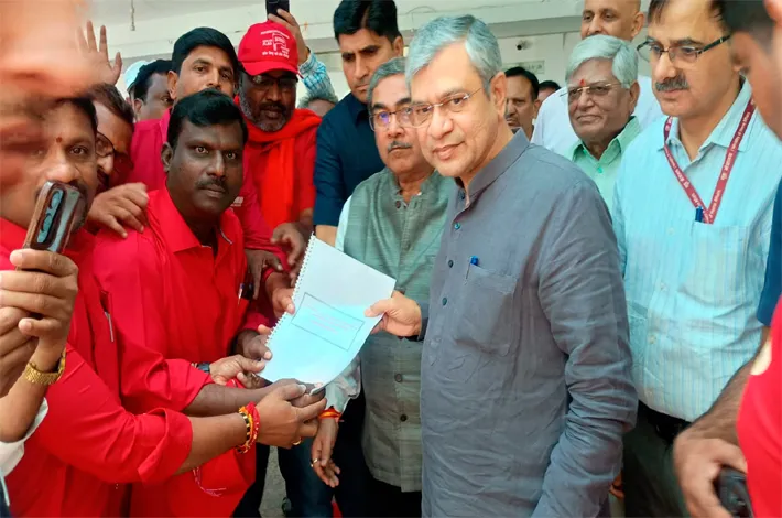 మహబూబాబాద్, ఏప్రిల్ 22 (విజయక్రాంతి): భారతీయ రైల్వే భద్రతలో కీలక పాత్ర పోషిస్తున్న ఇంజినీరింగ్ ట్రాక్ మెన్ల పని పరిస్థితులను మెరుగుపరచాలని, పాతకాలపు వర్కింగ్ మ్యానువల్స్ను సవరించాలని కోరుతూ మజ్దూర్ యూనియన్ ప్రతినిధుల బృందం రైల్వే శాఖ మంత్రి అశ్విని వైష్ణవ్, ఆల్ ఇండియా రైల్వేమెన్ ఫెడరేషన్ జనరల్ సెక్రెటరీ శివగోపాల్ మిశ్రాను కలిసి వినతి పత్రం అందజేశారు.