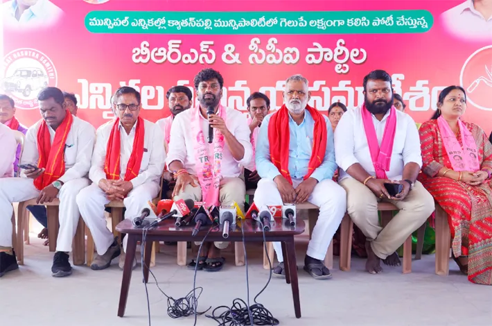 క్యాతనపల్లి మున్సిపాలిటీలో పది బీఆర్ఎస్, నాలుగు సీపీఐ గెలుచుకున్నప్పటికి కాంగ్రెస్ ప్రభుత్వం సోమవారం జరగాల్సిన ప్రమాణ స్వీకారాన్ని పోలీసులతో కలిసి కౌన్సిల్కు హాజరు కాకుండా ఇబ్బందులకు గురి చేసి వాయిదా వేశారన్నారు. కొందరు కౌన్సిలర్లను కిడ్నాప్ చేసే ప్రయత్నాలు చేస్తున్నారని, కాంగ్రెస్ నాయకులు గుండాయిజం చేస్తున్నారని, ఇది సరైన పద్దతి కాదన్నారు. క్యాతనపల్లి బీఆర్ఎస్, సిపిఐ కౌన్సిలర్లు ఉన్న క్యాంపుపై దాడి చేసేందుకు తీవ్రంగా ప్రయత్నించారని, భద్రాచలంలోని నందిని హోట ల్లో క్యాంపులో ఉన్న కౌన్సిలర్లను చెదరగొట్టేందుకు పోలీసులు హోటల్పై దాడి చేశారన్నారు.