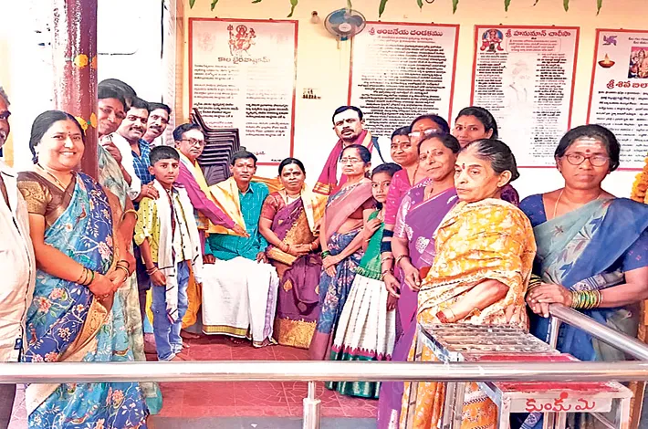 సుల్తానాబాద్ , మార్చి 19 (విజయ క్రాంతి): పెద్దపల్లి జిల్లా సుల్తానాబాద్ పట్టణంలోని పాత బజార్లో గల శివాలయంలో ఆయిల్ఘ రాజశేఖర్ సరిత దంపతుల పెళ్లి రో జు సందర్భంగా గురువారం వారికి స్వామి వారి శేష వస్త్రాన్ని అర్చకులు వల్లకొండ మ ఠం రమేష్,మహేష్ లు అందజేశారు, అనంతరం ఆ దంపతుల ను సన్మానించారు, ఈ కార్యక్రమం లో శివాలయం చైర్మన్ అల్లంకి సత్యనారాయణ, భక్త బృందం పాల్గొన్నారు.