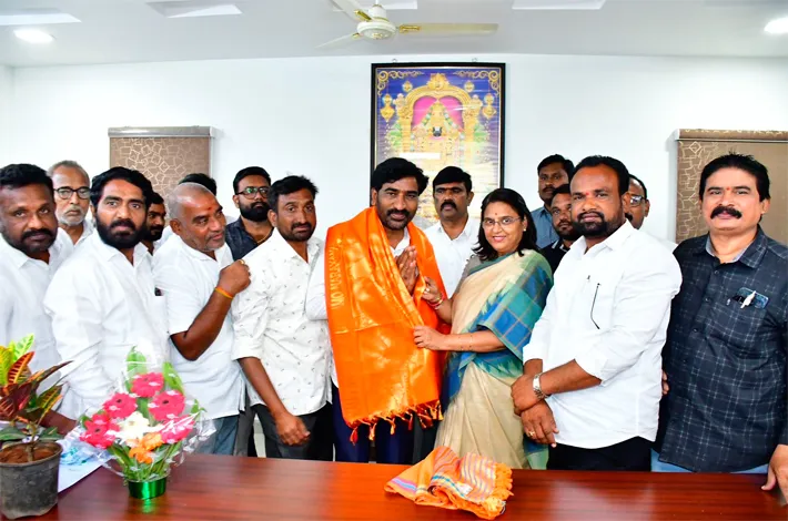 కోదాడ, జనవరి 23: సూర్యాపేట జిల్లా పెరిక సంఘం నూతన అధ్యక్షుడిగా ఎన్నికైన సముద్రాల రాంబాబు, ప్రధాన కార్యదర్శి పత్తిపాక జనార్ధన్లు కోదాడ ఎమ్మెల్యే ఉత్తమ్ పద్మావతి రెడ్డిని మర్యాదపూర్వకంగా కలుసుకున్నారు. శుక్రవారం కోదాడ పట్టణంలోని ఎమ్మెల్యే క్యాంపు కార్యాలయంలో ఎమ్మెల్యే నూతన కార్యవర్గానికి శుభాకాంక్షలు తెలియజేసి, వారిని శాలువాతో ఘనంగా సన్మానించారు. కుల సంఘాలు సామాజిక అభివృద్ధికి తోడ్పడాలని ఆమె కోరారు.