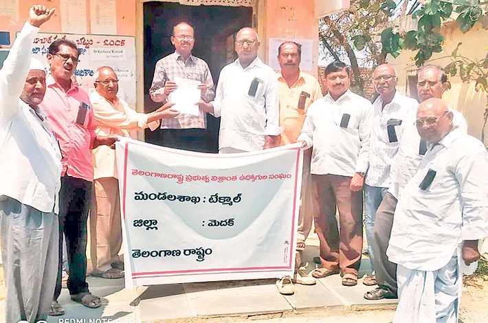 టెక్మాల్, మార్చి 25 : కేంద్ర ప్రభుత్వం పెన్షనర్లకు తీవ్ర నష్టాన్ని కలిగించే పెన్షన్ వాలిడిషన్ చట్టం 2025 తక్షణమే రద్దు చేయాలని విశ్రాంతి ఉద్యోగుల సంఘం మండల అధ్యక్షులు నా రయణ అన్నారు. బుధవారం ఆ సంఘం ఆద్వర్యంలో టేక్మాల్ త హసీల్దార్ కార్యలయం ముందు నిరసన వ్యక్తం చేశారు. అనంతరం తహసీల్మార్ తులసీరాంకు వినతి పత్రం అందించారు.