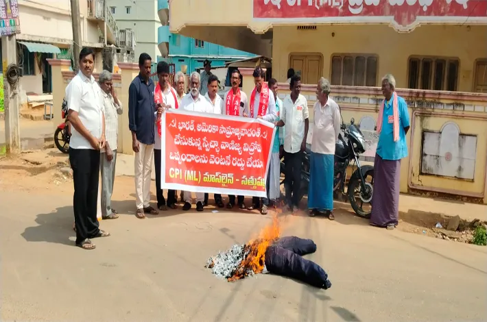 సత్తుపల్లి, ఫిబ్రవరి 9 (విజయ క్రాంతి): భారత్ అమెరికా సామ్రాజ్యవాదంతో చేసుకున్న విగ్రహం ఒప్పందాన్ని వెంటనే రద్దు చేయాలని సిపిఐ ఎంఎల్ మాస్ లైన్ సత్తుపల్లి మండల కమిటీ ఆధ్వర్యంలో మోడీ దిష్టిబొమ్మ దగ్ధం చేయటం జరిగింది. ఈ సందర్భంగా జిల్లా కార్యదర్శి గోకినేపల్లి వెంకటేశ్వరరావు మాట్లాడుతూ కార్మికుల పోరాడి సాధించుకున్న 29 చట్టాలను రద్దు చేసి యాడ్ మాన్యులకు లాభం చేకూర్చేలా ప్రమాదకరమైన నాలుగు లేబర్ కోళ్లను తెచ్చింది వీటివల్ల కార్మికులు ఈఎస్ఐ పీఎఫ్ గ్రాడ్యుటి మరియు పెన్షన్ వంటి సామాజిక భద్రతకు దూరమవుతున్నారని, ఉద్యోగ భద్రత కరువైతున్నదని, వారు అన్నారు.