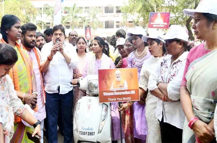 ఈ బిల్లు అమలు కాకుండా చేయాలనే దురుద్దేశంతో కాంగ్రెస్ పార్టీ, రేవంత్రెడ్డి ప్రభుత్వం, ఇండీ అలయెన్స్ పార్టీలు కలిసి తప్పుడు ప్రచారం చేస్తున్నాయని ఆగ్రహం వ్యక్తంచేశారు. మహిళల సాధి కారతకు మద్దతుగా, అలాగే మహిళలకు 33 శాతం రిజర్వేషన్ల బిల్లుకు అనుకూలంగా బీజేపీ తెలంగాణ రాష్ట్ర మహిళా మోర్చా, యు వ మోర్చా ఆధ్వర్యంలో బుధవారం స్కూటీ ర్యాలీ నిర్వహించారు. ఈ ర్యాలీలో మహిళలు పెద్దఎత్తున పాల్గొన్నారు.