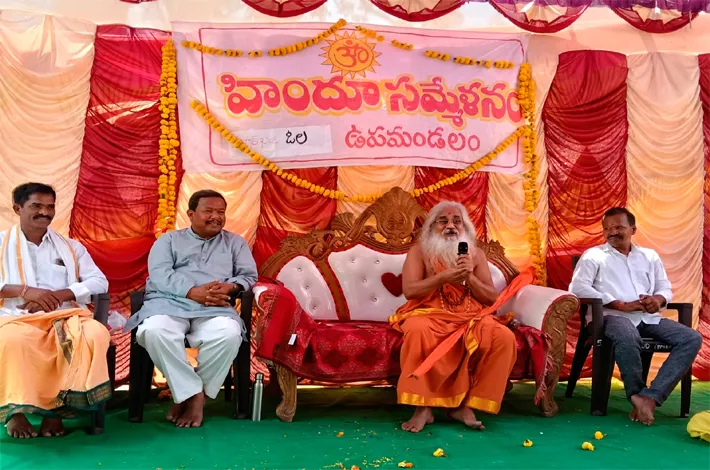 భైంసా, ఏప్రిల్ 8 (విజయక్రాంతి): హైందవ భారత దేశంలో ధర్మ పరిరక్షణ మన చేతుల్లోనే ఉందని అది కాపాడుకోవాల్సిన అవసరం వచ్చిందని శ్రీశ్రీశ్రీ గన్నవరం పీఠాధిపతి కమలానంద భారతి అన్నారు. బుధవా రం కుంటాల మండలంలోని ఓలా గ్రామంలో నిర్వహించిన హిందూ సమ్మేళనంలో పాల్గొన్నారు.