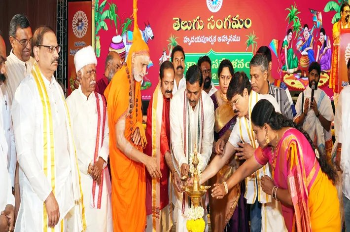 హైదరాబాద్ సిటీ బ్యూరో, జనవరి 25: తెలుగు భాష, కళలు, సంస్కృతి పరిరక్షణ, ప్రోత్సాహానికి అంకితమైన ప్రముఖ సాం స్కృతిక సంస్థ తెలుగు సంగమం ఆధ్వర్యంలో సంక్రాంతి సమ్మేళనం 2026ను హైదరాబాద్లోని శ్రీమంత్ర కన్వెన్షన్లో ఘనంగా నిర్వహించారు. ఈ కార్యక్రమం విరూపాక్ష విద్యారణ్య మహాసంస్థాన పీఠాధిపతి, పూజ్యశ్రీ జగద్గురు శంకరాచార్య విద్యారణ్య భారతి మహాస్వామి వారి ఆశీర్వచనాలతో ఆధ్యాత్మిక వాతావరణంలో ప్రారంభమైంది.