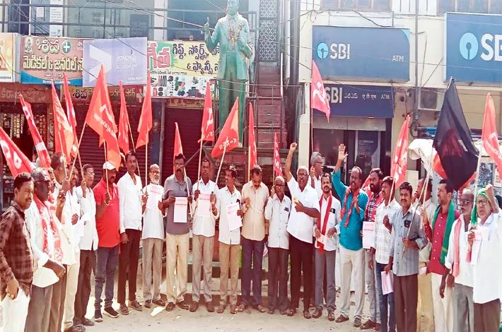 ఆలేరు, జనవరి 16 ( విజయక్రాంతి ): విత్తన, విద్యుత్, వి బి జీ రామ్ జీ బిల్లు లను తక్షణమే రద్దు చేయాలని కార్మిక సంఘాలు,ఎస్ కే ఎంల నాయకులు డిమాండ్ చేశారు, శుక్రవారం ఆలేరులోని డాక్టర్ బి.ఆర్.అంబేద్కర్ విగ్రహం ముందు కార్మిక సంఘాలు, సంయుక్త కిసాన్ మోర్చ(ఎస్ కే ఎం)లు ఇచ్చిన పిలుపు మేరకు 4 లేబర్ కోడ్ లను,విద్యుత్ సవరణ బిల్లు,విత్తన బిల్లు,ఉపాధి హామీ చట్టం పథకాన్ని రద్దు చేసే బిల్లులను రద్దు చేయాలని నిరసన వ్యక్తం చేశారు.