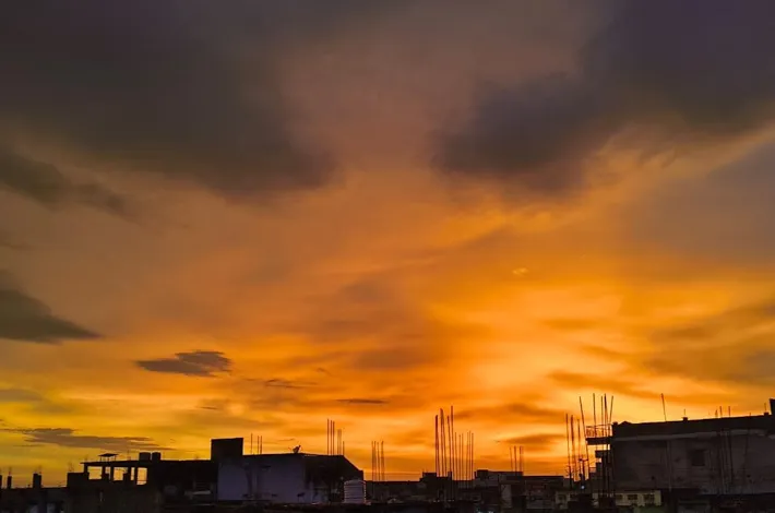 బంగారు వర్ణంలో కాంతులీనిన ఆకాశం