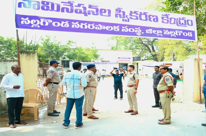 నల్లగొండ టౌన్ , జనవరి 28: నల్లగొండ మున్సిపల్ కార్యాలయంలో పక్కన ఏర్పాటు చేసిన నామినేషన్ స్వీకరణ కేంద్రాన్ని జిల్లా ఎస్పీ శరత్ చంద్ర పవార్ బుధవారం పరిశీలించారు. అభ్యర్థులు నామినేషన్లు దాఖలు చేసేందుకు అనుసరిస్తున్న విధానం, ప్రవేశనిష్క్రమణ మార్గాలు, క్యూలైన్లు, పోలీస్ బందొబస్త్, ట్రాఫిక్ నిర్వహణ తదితర అంశాలను పరిశీలించారు. అభ్యర్థులు, వారి ప్రతినిధులు ప్రజలకు ఎలాంటి అసౌకర్యం కలగకుండా నామినేషన్ ప్రక్రియ సజావుగా సాగాలని అధికారులకు సూచనలు ఇచ్చారు.