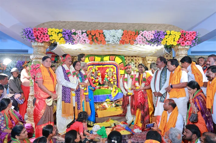 భోగ మహేశ్వరంలో ప్రత్యేకంగా నిర్మించిన మండపంలో పార్వతీ పరమేశ్వరుల కల్యాణ వేడుకను కోలాహాలంగా నిర్వహించారు. మహాక్రతువును ఆలయ ప్రధాన అర్చకులు వీరయ్యశాస్త్రీ నిర్వహించారు. అనంతరం దేవేరులకు వడిబియ్యం పోసి మెక్కులు చెల్లించుకున్నారు. మహక్రతువులో ఎమ్మెల్యే డా.వంశీకృష్ణ, డా.అనురాధ దంపతులు పాల్గొని.. స్వామివారికి ప్రత్యేక పూజలు చేశారు.