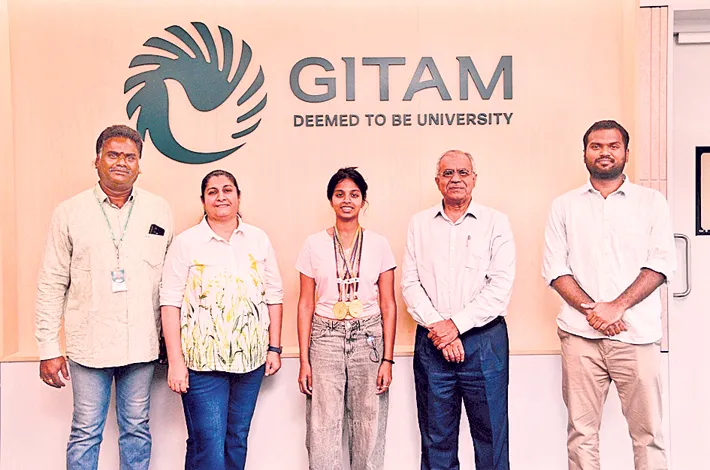 పటాన్ చెరు, ఫిబ్రవరి 23 : గీతం డీమ్డ్ విశ్వవిద్యాలయం హైదరాబాదులోని బీ.ఆర్క్ తొలి ఏడాది విద్యార్థిని ఆశ్రిత రాజు తెలంగాణ ముఖ్యమంత్రి కప్ 2025-26 పికిల్ బాల్ పోటీలలో ప్రతిభ చాటి మూడు బంగారు పతకాలను గెలుచుకుంది. సీఎం కప్ రెండో ఎడిషన్ తుది దశ పోటీలను ఫిబ్రవరి 20-21 తేదీలలో హైదరాబాదులోని లాల్ బహదూర్ శాస్త్రి స్టేడియంలో నిర్వహించారు. పికిల్ బాల్ ఉమెన్స్ సింగిల్స్, ఉమెన్స్ డబుల్స్, మిక్స్ డ్ డబుల్స్ పోటీలలో ఆశ్రిత నెగ్గి మూడు బంగారు పతకాలను కైవసం చేసుకుంది.