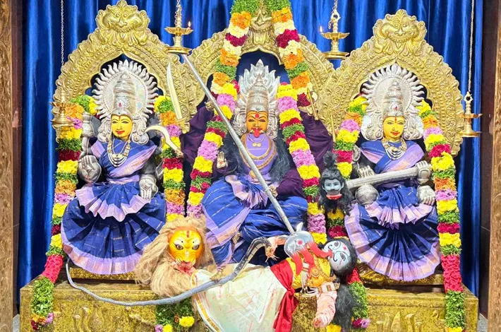 మహిషాసుర మర్దిని దేవి అలంకరణలో త్రిశక్తులు
