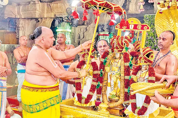 ఆలయంలోని రంగనాయకుల మండపంలో జరిగిన ఈ కార్యక్రమంలో వివిధ రకాల ఫలాలు, పుష్పాలతో స్వామి, అమ్మవార్ల ఉత్సవమూర్తులను అందంగా అలంక రించారు. బాదం, పిస్తా, కుంకుమపువ్వు, వట్టివేరు, పసుపు కొమ్ములు, ఎండు ద్రాక్ష, యాలకులు, తులసి, రోజామాలలతో శ్రీ దేవి, భూదేవి సమేత శ్రీమలయప్పస్వామివారి ఉత్సవమూర్తులను అలంకరించారు. వివిధ రంగుల పుష్పాలు, ఫలాలు, సాంబ్రా ణి, ధూపదీప నైవేద్యాలతో పూజలు నిర్వహించారు.పాలు, పెరుగు, తేనె, చందనం, పసుపు కొబ్బరినీళ్లు తదితర సుగంధద్రవ్యాలతో అభిషేకం చేశారు.