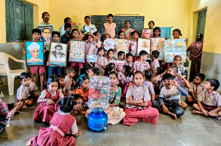 నూతనకల్, ఫిబ్రవరి 25: నేటి బాలబాలికలే భవిష్యత్తులో దేశాభివృద్ధికి మూలస్తంభాలని, ప్రతి విద్యార్థి తమ బాధ్యతను గుర్తించి దేశ నిర్మాణంలో భాగస్వాములు కావాలని ఫోర్ టైమ్స్ గిన్నిస్ వరల్ రికార్డ్ హోల్డర్ పెండెం కృష్ణ కుమార్ పిలుపునిచ్చారు. బుధవారం మండలంలోని పెదినిమిల ప్రాథమిక పాఠశాల విద్యార్థులకు, స్వాతంత్య్ర సమరయోధుల చిత్రపటాలు, భారతదేశం మరియు తెలంగాణ రాష్ట్ర మ్యాపులను ఆయన పంపిణీ చేశారు.