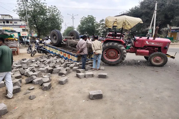 కుమ్రంభీం ఆసిఫాబాద్,(విజయక్రాంతి): పట్టణంలోని యూనియన్ బ్యాంక్ ఆఫ్ ఇండియా ఎదురుగా బుధవారం సిమెంటు ఇటుకలతో వెళ్తున్న ట్రాక్టర్ బోల్తా పడింది. ఆ ప్రాంతంలో (స్పీడ్ బ్రేకర్లు/సైన్బోర్డులు) లేకపోవడంతోనే ఈ ప్రమాదం జరిగినట్లు తెలిసింది.ఇటీవల రోడ్డు మరమ్మత్తురులో భాగంగా నూతనంగా తారు రోడ్డు వేయడంతో వాహనాలు అధిక వేగంతో వెళ్తుండటంతో ప్రమాదాలు చోటుచేసుకునే అవకాశముందని ప్రజలు ఆందోళన వ్యక్తం చేశారు. పాత అటవీశాఖ చెక్పోస్ట్ నుండి జనకాపూర్ వరకు పలు ప్రాంతాల్లో స్పీడ్ బ్రేకర్లు ఏర్పాటు చేయాల్సిన అవసరం ఉంది. ఇప్పటికైనా సంబంధిత ఉన్నతాధికారులు స్పందించి స్పీడ్ బ్రేకర్లు ఏర్పాటు చేయాలని, అవసరమైన హెచ్చరిక బోర్డులు పెట్టాలని స్థానికులు కోరుతున్నారు.