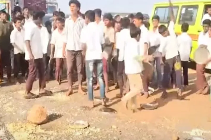 నారాయణఖేడ్, ఫిబ్రవరి 12: నారాయణఖేడ్ పట్టణంలోని జూకల్ శివారులో కల గిరిజన ఆశ్రమ పాఠశాల విద్యార్థులు గురువారం నారాయణఖేడ్ నిజాంపేట్ ప్రధాన రహదారిపై అన్నం వడ్డించిన గిన్నెలతో నిరసన వ్యక్తం చేసి ధర్నా, రాస్తారోకో నిర్వహించారు. ఈ సందర్భంగా వారు మాట్లాడుతూ ఆశ్రమ పాఠశాలలో గత కొన్నాళ్లుగా తమకు నాణతా లోపమైన ఆహారాన్ని వడ్డిస్తున్నారని ఆరోపించారు.