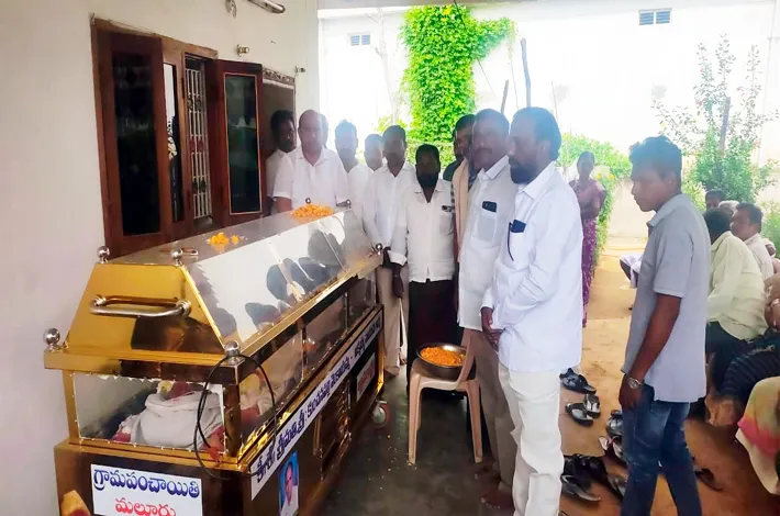 మంగపేట,నవంబర్30 (విజయక్రాంతి)మంగపేట మండలం మల్లూరు గ్రామంలో బిఆర్ఎస్ పార్టీ నాయకులు అల్లే జనార్ధన్ తండ్రి అల్లి నరసయ్య ఆకస్మాత్తుగా మరణించగా అల్లే జనార్ధన్ కుటుంబాన్ని పరామ ర్శించి నరసయ్య పార్థివ దేహానికి పూలమాలవేసి నివాళులర్పించి వారి ఆత్మ శాంతి చేకూరాలని ఆ భగవంతుని ప్రార్థించారు.