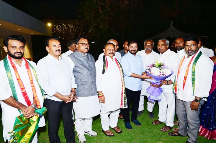 అలంపూర్, ఫిబ్రవరి 14: గద్వాల జిల్లా వడ్డేపల్లి మున్సిపాలిటీ హస్తగతం అయినట్లు తెలుస్తోంది. మరోపక్క అభివృద్ధి కోసమే సీఎం రేవంత్రెడ్డిని కలిశామని ఫార్వార్డ్ బ్లాక్ కౌన్సిలర్లు ట్విస్ట్ల మీద ట్విస్ట్లు ఇస్తూ సోషల్మీడియాలో వైరల్ చేయిస్తున్నారు. వడ్డేపల్లి మున్సిపాలిటీలో కాంగ్రెస్ తరఫున 10 వార్డుల్లో అభ్యర్థులు బరిలో నిలిచి, ఒక్క వా ర్డు మినహా మిగతా 9 వార్డుల్లో ఓటమి పాలయ్యారు. అక్కడ 8 వార్డుల్లో ఆల్ ఇండి యా ఫార్వర్డ్ బ్లాక్ పార్టీ తరఫున గెలిచి, ప్రభంజనం సృష్టించిన కౌన్సిలర్లు 24 గంట లు గడవకముందే శనివారం రాత్రి హైదారాబాద్ జూబ్లీహిల్స్లోని సీఎం నివాసంలో ముఖ్యమంత్రి రేవంత్రెడ్డి, మంత్రి జూపల్లి కృష్ణారావు, ఎంపీ మల్లురవి, మాజీ ఎమ్మె ల్యే సంపత్ కుమార్ సమక్షంలో కలిశారు.