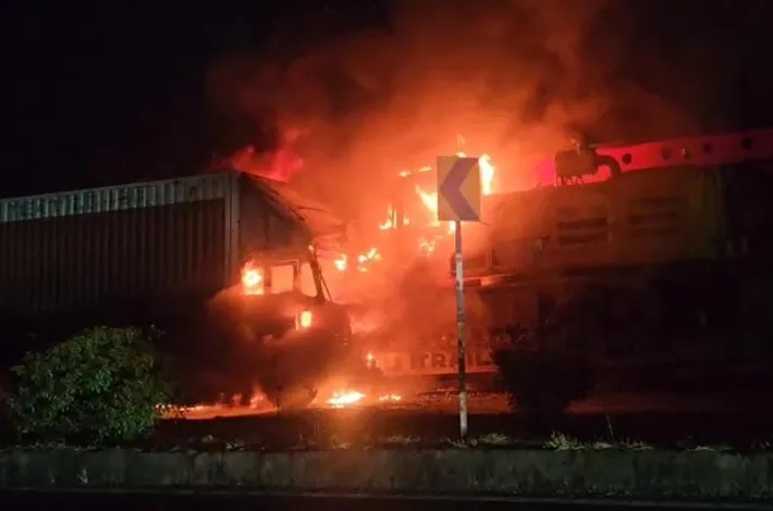 జాతీయ రహదారిపై రెండు లారీల దగ్ధం..