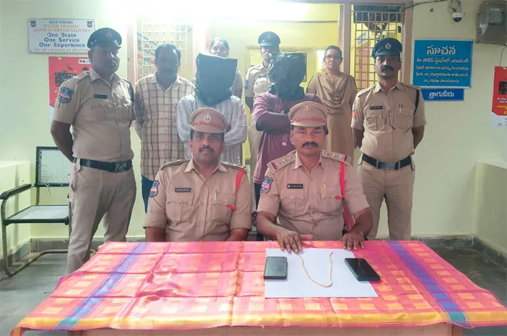 నూతనకల్, జనవరి 19: మండల పరిధిలోని బిక్కుమల్ల గ్రామంలో గత వారం జరిగిన మహిళ మెడలోని మంగళసూత్రం చోరీ కేసును పోలీసులు ఛేదించారు. ఈ సందర్భంగా నిర్వహించిన విలేకరుల సమావేశంలో సీఐ నరసింహారావు, సీసీఎస్ సీఐ శివకుమార్ తెలిపిన వివరాల ప్రకారం.. సోమవారం మధ్యాహ్నం 12 గంటల సమయంలో ఎర్రపహాడ్ ఎక్స్ రోడ్డు వద్ద తుంగతుర్తి సీఐ ఏ. నరసింహారావు, సీసీఎస్ సీఐ శివకుమార్ తమ సిబ్బందితో కలిసి తనిఖీలు నిర్వహిస్తుండగా, బ్పై అనుమానాస్పదంగా వస్తున్న ఇద్దరు వ్యక్తులను పట్టుకుని విచారించారు.