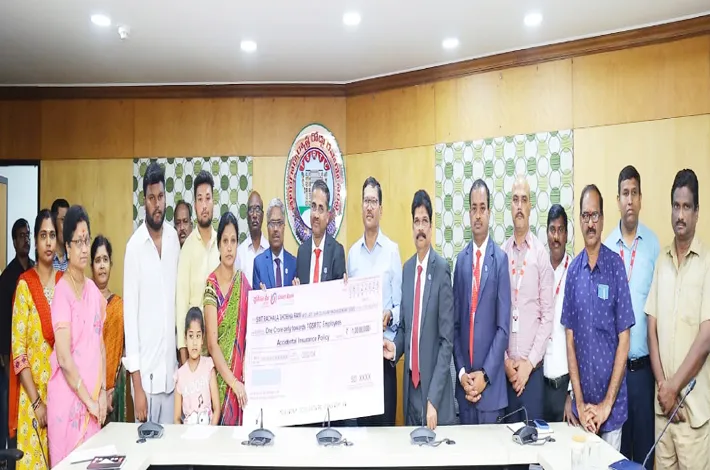 దురదృష్టవశాత్తు మరణించిన టీఎస్ఆర్టీసీ ఉద్యోగులు దుర్గం రాఘవేందర్గౌడ్, అల్లందుర్గ వెంకటేష్ కుటుంబ సభ్యులకు తలా రూ.కోటి విలువైన వ్యక్తిగత ప్రమాద బీమా క్లెయిమ్ చెక్కులను టీఎస్ఆర్టీసీ ఎండీ వై. నాగిరెడ్డి, యూనియన్ బ్యాంక్ ఎగ్జిక్యూటివ్ డైరెక్టర్ అమరేష్ ప్రసాద్, చీఫ్ జనరల్ మేనేజర్ ఎం రవీంద్రబాబు పంపిణీ చేశారు. కార్యక్రమంలో బి.భాస్కర్ (రీజినల్ హెడ్, సికింద్రాబాద్), ఆర్. సత్యనారాయణ (రీజినల్ హెడ్, మహబూబ్ నగర్), టీఎస్ఆర్టీసీ ఈడీ (ఆపరేషన్స్), ఈడీ (టెక్నికల్/ఐటీ), ఫైనాన్షియల్ అడ్వైజర్, చీఫ్ పర్సనల్ మేనేజర్ పాల్గొన్నారు