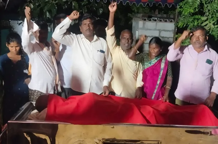 పెన్ పహాడ్: మండలంలోని ధర్మపురం గ్రామానికి చెందిన ప్రజా కళాకారుడు ఎర్రజెండ ముద్దుబిడ్డ వల్దాస్ లింగయ్య(56) శనివారం అనారోగ్యంతో మృతి చెందాడు. ఈ మేరకు సిపిఎం పార్టీ సీనియర్ నాయకులు, సిఐటియు జిల్లా కమిటీ సభ్యులు రణపంగ కృష్ణ విచ్చేసి.. మృతుడు లింగయ్య పార్థివదేహంపై ఎర్రజెండా కప్పి, పూలమాల వేసి నివాళులు అర్పించి కుటుంబ సభ్యులకు సానుభూతి ప్రకటించారు. ఈ సందర్భంగా కృష్ణ మాట్లాడుతూ... మృతుడు లింగయ్య చిన్నతనం నుండే ఎర్రజెండా చేతబట్టి మండలంలోని వివిధ గ్రామాల్లో ప్రజలను చైతన్య చేయడం కోసం ప్రజానాట్యమండలి ఆధ్వర్యంలో ఆట -పాటల ద్వారా ప్రజలను మేల్కొల్పి ప్రజా ఉద్యమాలు నిర్వహించరన్నారు. ఆయన ఆశయ సాధన కోసం ప్రతి ఒక్కరూ ఎర్రజెండా పక్షాన ప్రజా పోరాటాలు నిర్వహించాలని ఆయన పిలుపునిచ్చారు. ఈ కార్యక్రమంలో మాజీ ఎంపిటిసి నెమ్మాది లక్ష్మి, మండల కమిటీ సభ్యుడు రణపంగ బుచ్చి రాములు, శాఖ కార్యదర్శి మోదుగు రవీందర్ రెడ్డి, నెమ్మది లింగయ్య, వల్దాస్ సైదులు నెమ్మది రాధాకృష్ణ, వెంకయ్య, సోమయ్య, శ్రీకాంతు తదితరులు ఉన్నారు.