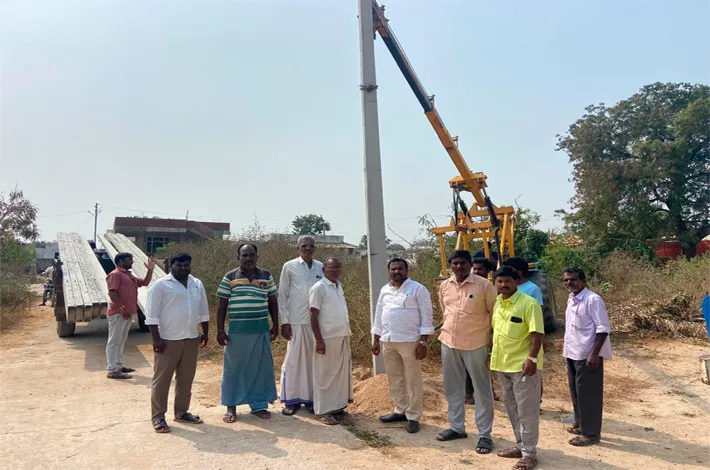 మర్రిగూడ, ఫిబ్రవరి 5 : మునుగోడు ఎమ్మెల్యే కోమటిరెడ్డి రాజగోపాల్ రెడ్డి సహకారంతో ప్రగతి పథంలో తీర్చిదిద్దడమే తమ ధ్యేయమని రాంరెడ్డి పల్లి సర్పంచ్ లపంగి నర్సింహా అన్నారు గురువారం ’ప్రజా బాట’ కార్యక్రమం సర్పంచ్ అధ్యక్షతన విజయవంతంగా నిర్వహించబడింది.గ్రామంలో నెలకొన్న విద్యుత్ సమస్యల పరిష్కారమే ధ్యేయంగా కొత్త విద్యుత్ స్తంభాలను ఏర్పాటు చేశారు.