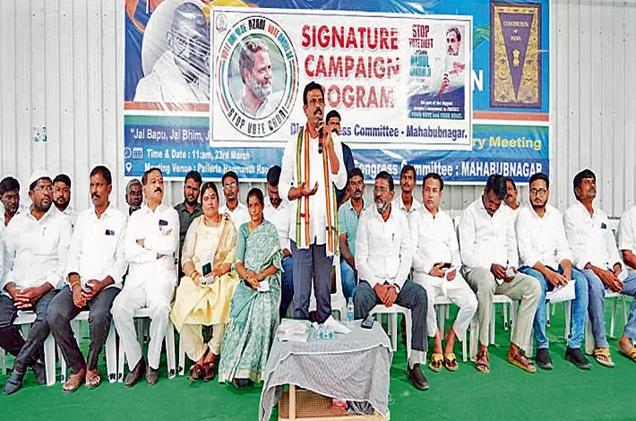 ఓటు చోరీకి వ్యతిరేకంగా సంతకాల సేకరణ కార్యక్రమంలో కాంగ్రెస్ పార్టీ జిల్లా అధ్యక్షుడి, ఎమ్మెల్యే మధుసూదన్ రెడ్డి
