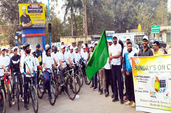 కొత్తగూడెం పోస్ట్ ఆఫీస్ సెంటర్ నుంచి ప్రారంభమైన సైకిల్ ర్యాలీ రైల్వే స్టేషన్ వరకు కొనసాగగా, ఈ ర్యాలీలో పెద్ద ఎత్తున యువత, నూతన ఓటర్లు ఉత్సాహంగా పాల్గొని ఓటు హక్కు వినియోగంపై అవగాహన సందేశాలను ప్రజల్లోకి విస్తృతంగా తీసుకెళ్లారు. ఈ కార్యక్రమంలో జిల్లా యువజన క్రీడా శాఖల అధికారి పరంధామ రెడ్డి, ఎన్నికల సూపర్డెంట్ రంగ ప్రసాద్ , పాల్వంచ తాసిల్దార్ ధారా ప్రసాద్, ఎన్నికల ట్రైనర్ సాయి కృష్ణ,ఎన్నికల సిబ్బంది నవీన్,సంబంధిత శాఖల అధికారులు, జిల్లా యువజన మరియు క్రీడల శాఖ సిబ్బంది, విద్యార్థులు, యువత పాల్గొన్నారు.
