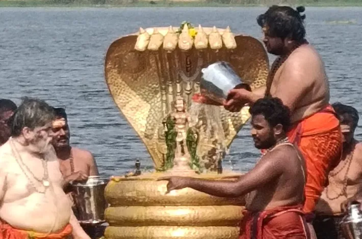 వేదమంత్రోత్సవాల మధ్య స్వామివారికి జలాభిషేకం