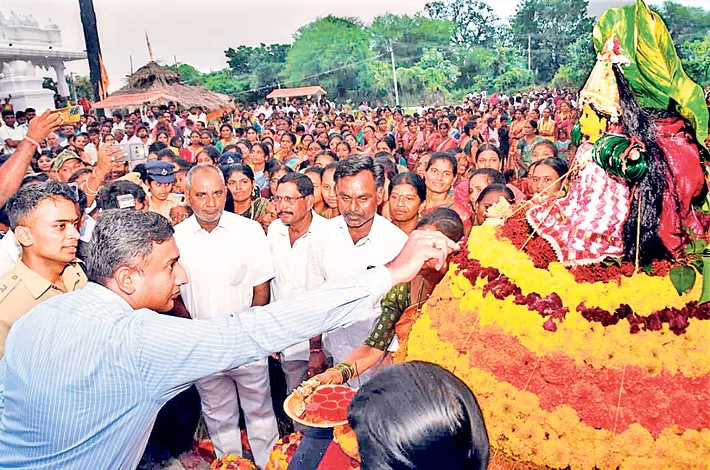 ముందుగా కాంగ్రెస్ నాయకురాలు గండ్ర సుజాత, మహిళలతో కలిసి బతుకమ్మలకు కలెక్టర్, ఎస్పీలు ప్రత్యేక పూజలు చేశారు. అనంతరం మహిళలతో కలిసి బతుకమ్మ ఆడుతూ సందడి చేశారు. మహిళలు తీరొక్క పూలతో పేర్చిన బతుకమ్మలను ఓ చోట చేర్చి ఆడి పాడారు. గ్రామస్థులంతా ఐక్యమత్యంగా ఉండి గ్రామాభివృద్ధిలో భాగస్వామ్యం కావాలని కలెక్టర్ పిలుపునిచ్చారు.