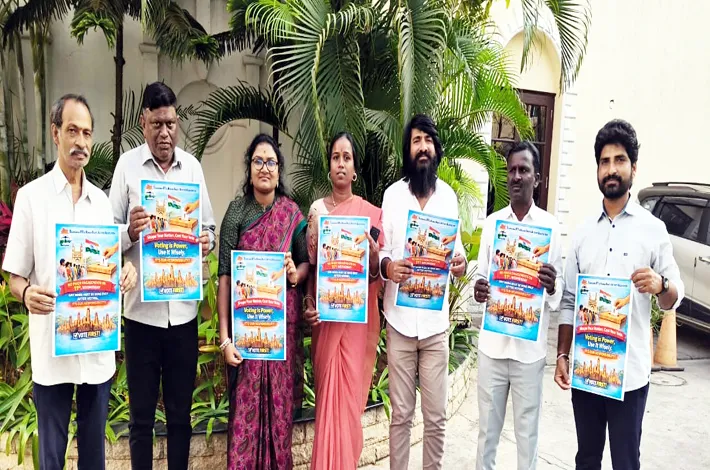 అలాగే, ఓటు హక్కు కలిగిన ప్రతి పౌరుడు తమ ఓటు హక్కును తప్పనిసరిగా వినియోగించుకుని, ప్రజాస్వామ్యంపై, రా జ్యాంగంపై నిబద్ధతతో, ప్రజా సమస్యలపై స్పందించే మంచి నాయకులను ఎన్నుకోవాలని అవగాహన కల్పించే పోస్టర్ను ఆదివా రం విడుదల చేశారు. కార్యక్రమంలో ఆర్టీఐ, హ్యూమన్ రైట్స్ ఆక్టివిస్ట్ అసోసియేషన్ తెలంగాణ చైర్మన్ అజయ్ కుమార్, ప్రెసిడెంట్ ధారా మౌనిక, జనరల్ సెక్రటరీ వెం కట్ నర్సింహారెడ్డి, ఆర్టీఐ అండ్ హ్యూ మన్ రైట్స్ హెడ్ పోచయ్య, లీగల్ అడ్వైజర్ శ్రీనివాస్, ఇతర సభ్యులు పాల్గొన్నారు.