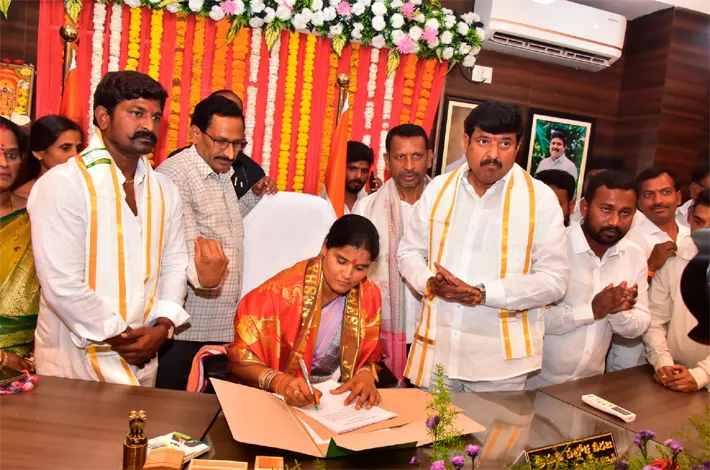 తాండూరు, మార్చి 2,(విజయ క్రాంతి) మున్సిపల్ ఎన్నికల్లో ప్రజలకు ఇచ్చిన హామీలను నిలబెట్టుకుంటామని అభివృద్ధి సంక్షేమం గడపగడపకు అందేలా కృషి చేస్తామని వికారాబాద్ జిల్లా తాండూర్ ఎమ్మెల్యే మనోహర్ రెడ్డి అన్నారు. సోమవారం మున్సిపల్ చైర్ పర్సన్ పట్లోళ్ల నీరజ , వైస్ చైర్మన్ రజాక్ పదవి బాధ్యతలు స్వీకరించారు. మున్సిపల్ చైర్ పర్సన్ చాంబర్లో వేద పండితులు ప్రత్యేక పూజలు నిర్వహించారు. వెద పండితులు మంత్రాలు మున్సిపల్ చైర్ పర్సన్ పట్లోళ్ల నీరజకు ఆశీర్వచనాలు అందించారు.