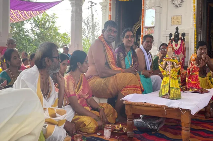 కామారెడ్డి అర్బన్,(విజయక్రాంతి): కామారెడ్డి జిల్లా దోమకొండ మండలం సంగమేశ్వర్ గ్రామంలో శ్రీ గోదాదేవి పద్మావతి సమేత కళ్యాణ వెంకటేశ్వర స్వామి ఆలయంలో వసంత పంచమి సందర్భంగా శుక్రవారం నాగప్రతిష్ట హోమము, శ్రీ గోదాదేవి పద్మావతి సమేత కళ్యాణ వెంకటేశ్వర స్వామి కళ్యాణము కార్యక్రమం ఘనంగా నిర్వహించారు. ఈ కార్యక్రమంలో దేవాలయ కమిటీ అధ్యక్షులు సర్పంచ్ శ్రీనివాసరావు , కార్యదర్శి నాయన పెద్ద బాల్రెడ్డి, ట్రెజరర్ గంట చంద్రశేఖర్, దేవాలయ ఫౌండర్ చైర్మన్ నాయిని లక్ష్మీనారాయణ రెడ్డి, పుట్ట పెద్ద లక్ష్మీనరసింహారెడ్డి, పుట్ట బాపురెడ్డి గ్రామ పెద్దలు ప్రజలు అధిక సంఖ్యలో పాల్గొన్నారు