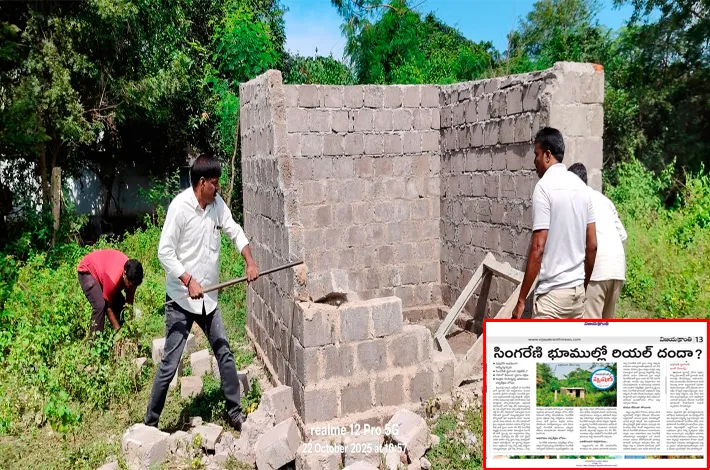 బెల్లంపల్లి పట్టణంలో సింగరేణి భూము ల్లో అక్రమ నిర్మాణాలు, భూ ఆక్రమణాలపై ‘విజయక్రాంతి’ దినపత్రికలో వరుస కథనాలు ప్రచురితమైన విషయం విధితమే... ఈ భూ కబ్జాల కథనాలపై సింగరేణి అధికారులు స్పందించారు. ఈ నెల 22న ‘సింగరేణి భూము ల్లో రియల్ దందా’ శీర్షికతో ప్రచురితమైన కథనానికి యాజమాన్యం స్పందిం చింది. బెల్లంపల్లిలోని 85డిప్ లో జరుగుతు న్న భూ అక్రమణ, అక్రమ షెడ్లను సెక్యూరిటీ ఎస్టేట్ అధికారులు రామారామీగా వెళ్లి కూల్చి వేశారు. హద్దుల కోసం వేసిన సిమెం ట్ ఫోళ్ళను తొలగించారు.