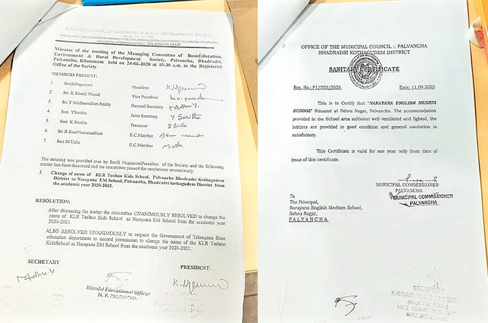 వివిధ ప్రభుత్వ శాఖల అధికారులు ఇచ్చిన ఎన్వోసీలో ఎక్కడ ఏరియా, ఇంటి నెంబర్ పొందపరచలేదు. కేఎల్ఆర్ టెక్నోకిడ్స్ పాఠశాల ఓపెనింగ్ పర్మిషన్ అనుమ తులు, కె ఎల్ ఆర్ టెక్నో కిడ్స్ పాఠశాల యాజమాన్యం నుంచి నారాయణ ఇంగ్లీష్ మీడియం పాఠశాల లీజు అగ్రిమెంట్ సమర్పించలేదు. ఓపెనింగ్ పర్మిషన్ లేకుండా రెన్యువల్ పర్మిషన్ ఎలా ఇచ్చారని అనుమానాలు వ్యక్తం అవుతున్నా యి.
